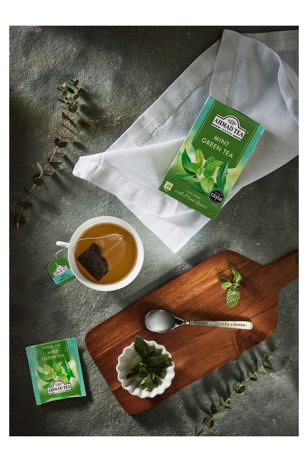 Το Πράσινο Τσάι με Μέντα της Ahmad Tea συνδυάζει δύο κλασικές, αγαπημένες γεύσεις – το απαλό κινέζικο πράσινο τσάι και τη δροσερή, φυσική μέντα – σε ένα ρόφημα αναζωογονητικό και αρμονικά ισορροπημένο.